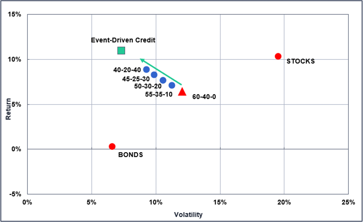 | 60% Stocks/40% Bonds | 50% Stocks/30% Bonds/20% Event-Driven Credit |