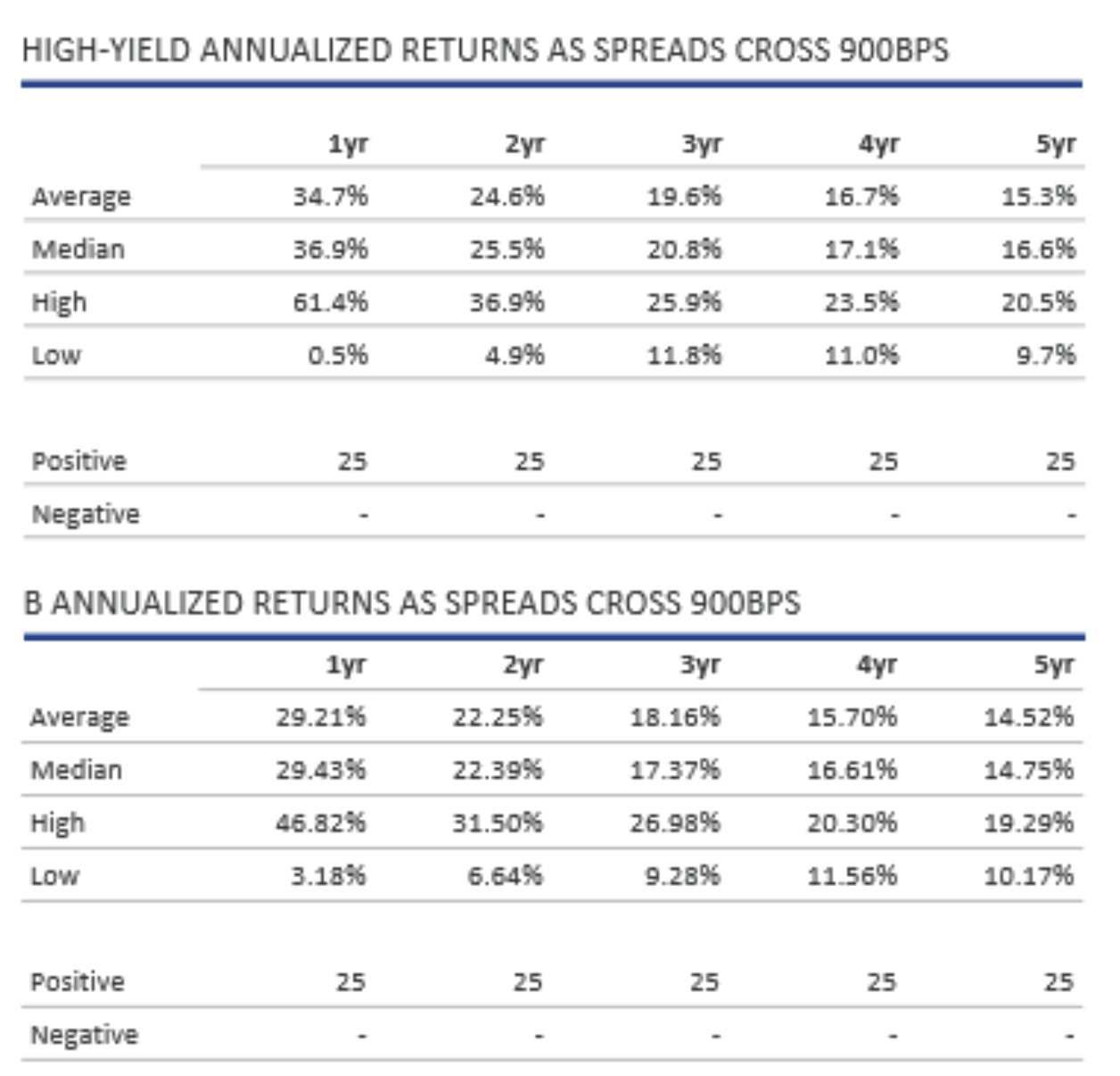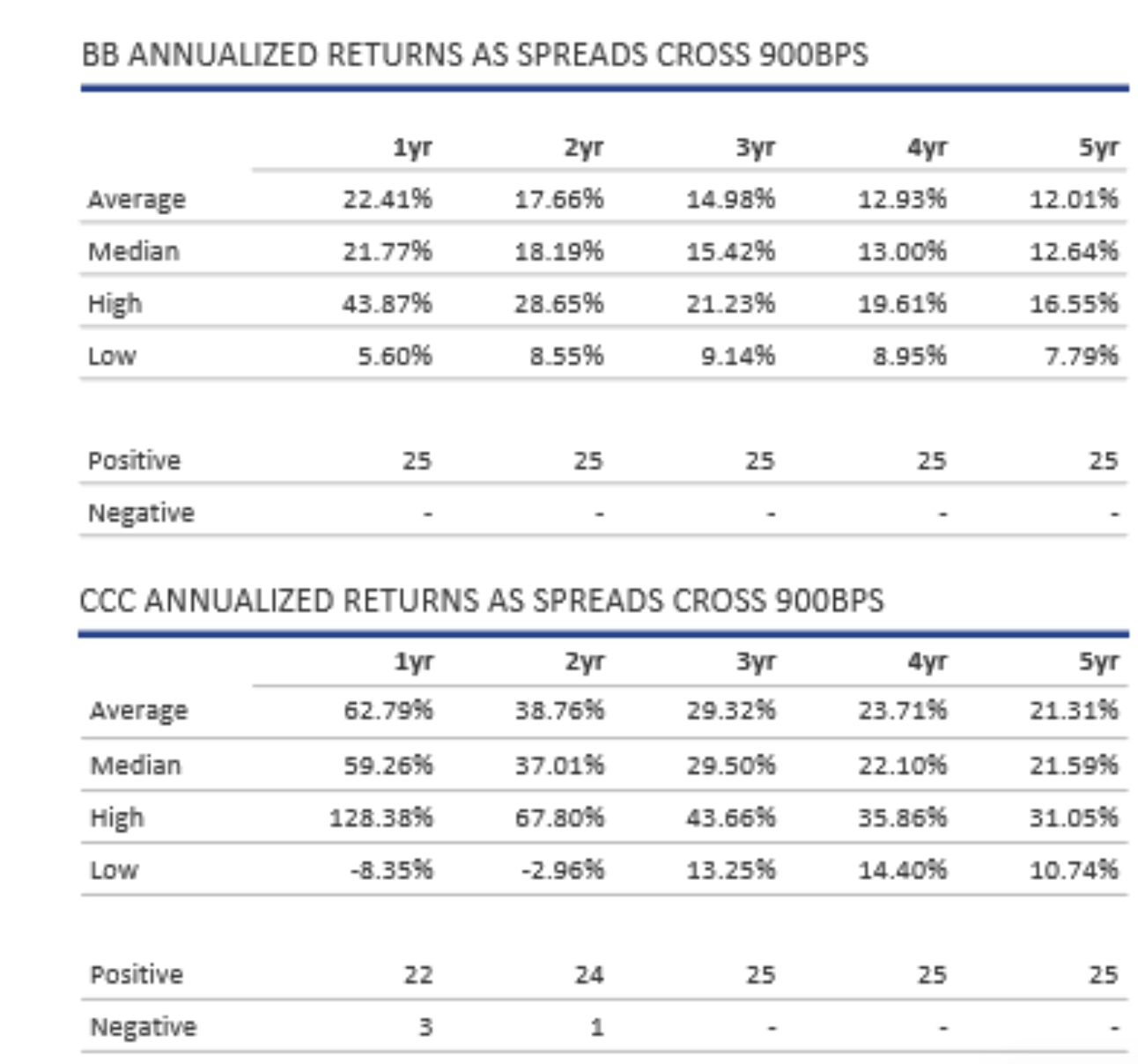 Looking back over the return history that we have (and using the US HY market with its longer available time series), we believe today’s entry levels look compelling.