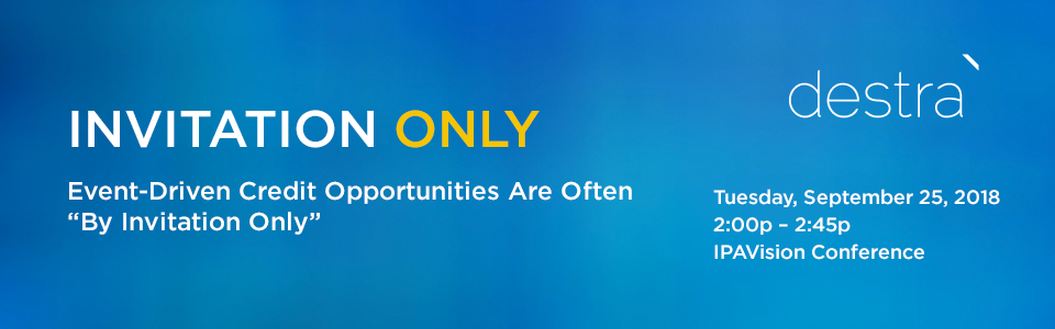 Event-Driven Credit Opportunities are often accessible to investors "by invitation only". In order to play in this space, large institutions get the first (and often the only) crack at special credit investment opportunities. But now investors have more access with help from Destra Capital & BlueBay.