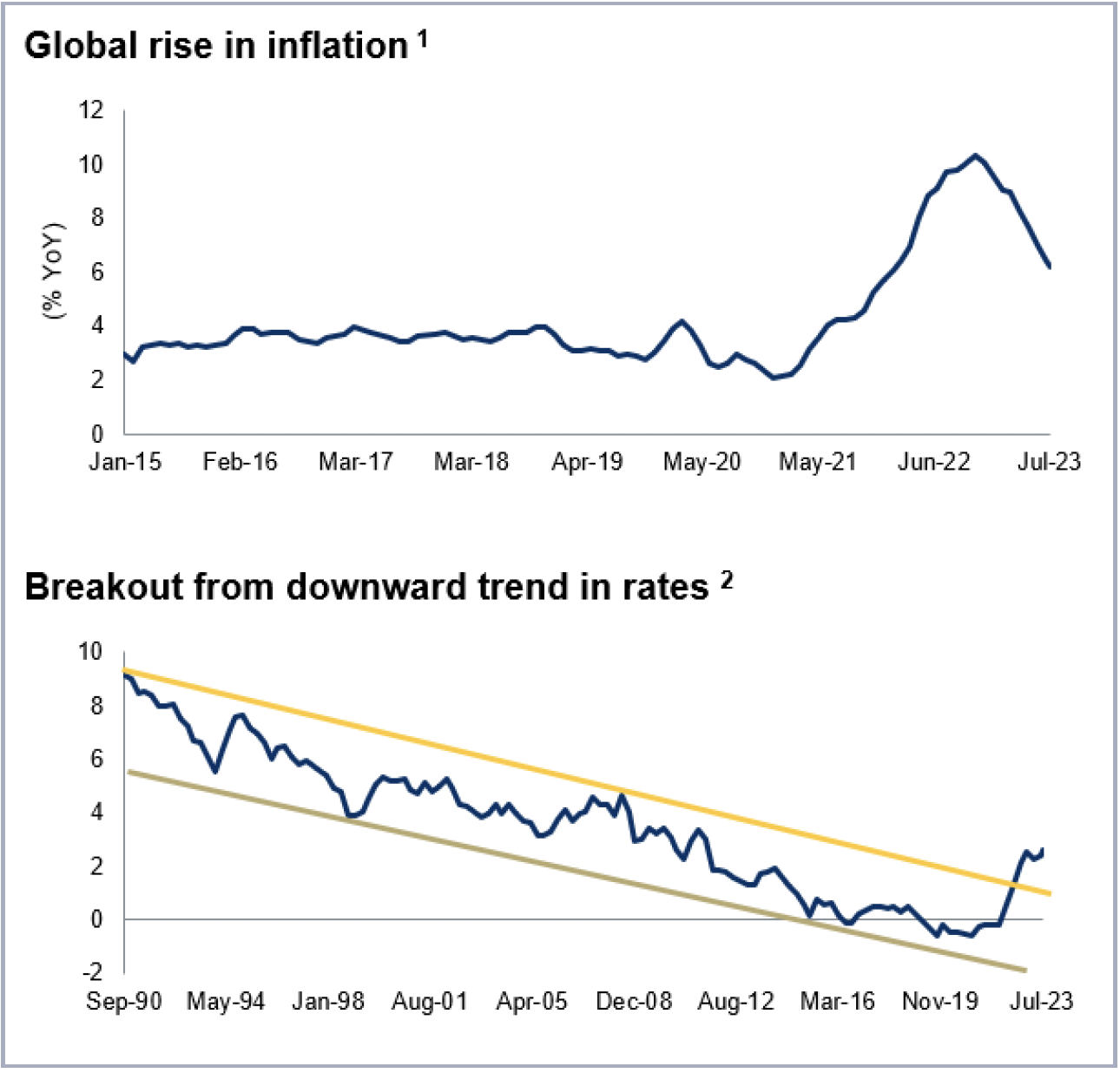 1 Source: Bloomberg, World Economy Weighted Inflation YoY%, as of 7/11/2023